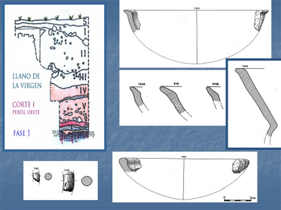 Fig. 7. Perfil y materiales significativos de los niveles iniciales