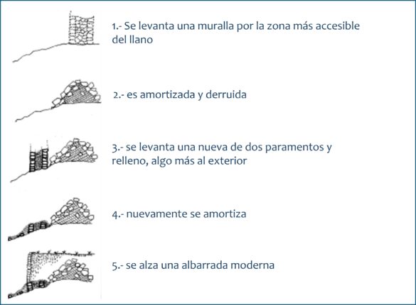La figura 12 ilustra las estructuras descritas anteriormente (Albarrada). Y su evolución hipotética, creemos, fue la siguiente (fig. 13):