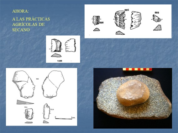 ¿De todo esto documentado hasta el día de la fecha, qué podemos inferir? ¿A qué conclusiones podemos llegar, en general, a la vista de estos datos estructurales y de los materiales funcionales asociados? En primer lugar, que conocían las prácticas agrícolas y ganaderas, cosa aparentemente evidente y normal, pero que para la zona y el momento es realmente excepcional y novedoso. Antes, en época ‘megalítica’, la economía se sustentaba en productos de recolección temporal que hacía necesaria, imponía, un tipo de ocupación itinerante, no fija (fig. 18 y 19).