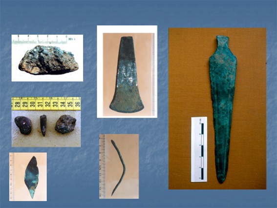Y por si esto no fuera suficiente, el capítulo innovador y muy destacado de la práctica metalúrgica es indicativo de una importante y novedosa actividad productiva, que se evidencia por la presencia de escorias y crisoles, se sospecha de un aprovechamiento de azuritas y malaquitas en vetas ya agotadas en las cercanías, además de numerosos y variados elementos metálicos (azuelas, punzones, puntas y puñales), lo que pone de manifiesto el uso y la elaboración in situ de estos objetos metálicos (fig. 21 y 22).
