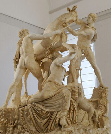 Muchos mitos son conocidos sobre todo gracias a las obras de arte. Una muy famosa representa el castigo de Dirce; es, para nosotros, la imagen por excelencia de este mito (Figura 1). Pero ese enorme grupo escultórico es llamado el “Toro Farnesio”, y a veces nos contentamos con los nombres sin preguntarnos por el contenido.