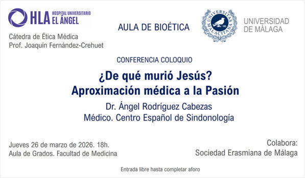 Impartida por D. Ángel Rodríguez Cabezas –Doctor en Medicina, cofundador y vicepresidente tercero de la SEMA. Organiza: Aula de Bioética. Cátedra de Ética Médica, Hospital Universitario El Ángel (HLA) y Universidad de Málaga (UMA). Colabora: Sociedad Erasmiana de Málaga. Jueves 26 de marzo de 2026, las 18:00h en el Aula… Continue reading
